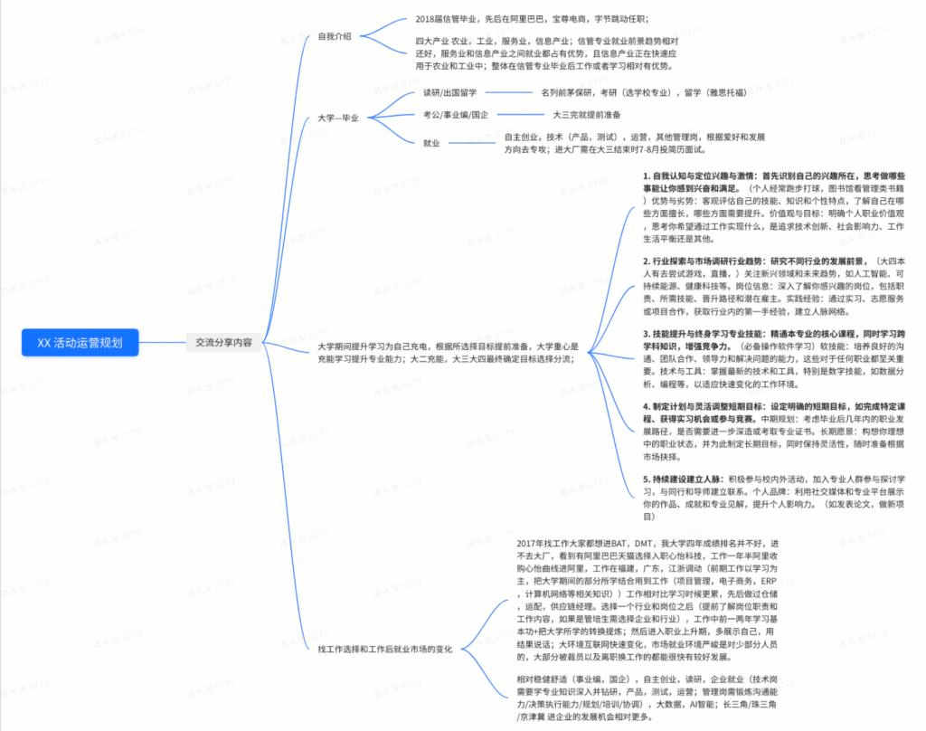 随后,2018届信息管理与信息系统专业毕业生高永发通过远程连线的方式进行了分享。他曾在阿里巴巴、宝尊电商等知名企业任职,目前就职于字节跳动公司,担任国际电商仓储主管一职。高永发学长利用一张思维导图,从大学能力储备、升学准备、就业选择三个维度,为大家进行了全面而深入的阐述。他强调,在大学阶段,积极提升自身技能至关重要,所学习的专业知识将为未来的职业生涯奠定坚实基础,并在实际工作中发挥重要作用。同时,高永发学长还特别鼓励管理类专业的学生注重培养沟通能力,强调在决策过程中应避免优柔寡断,展现出更加果断和坚定的态度。